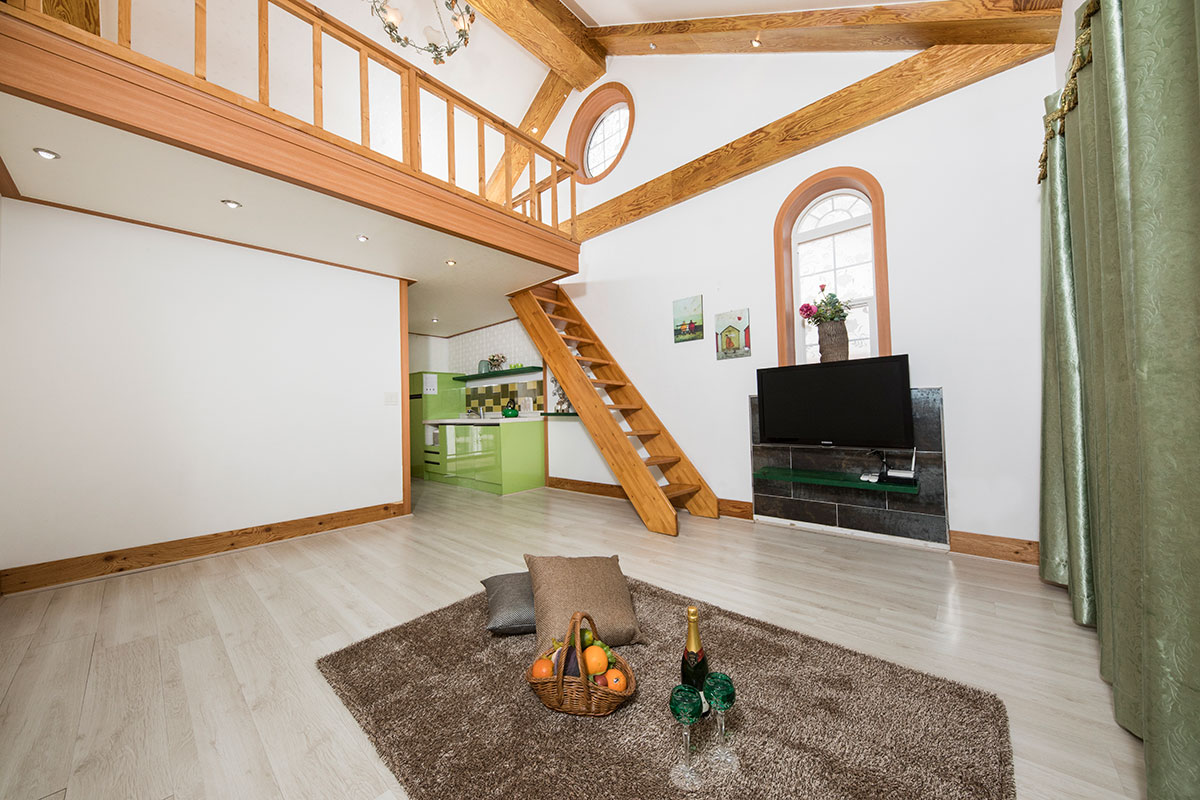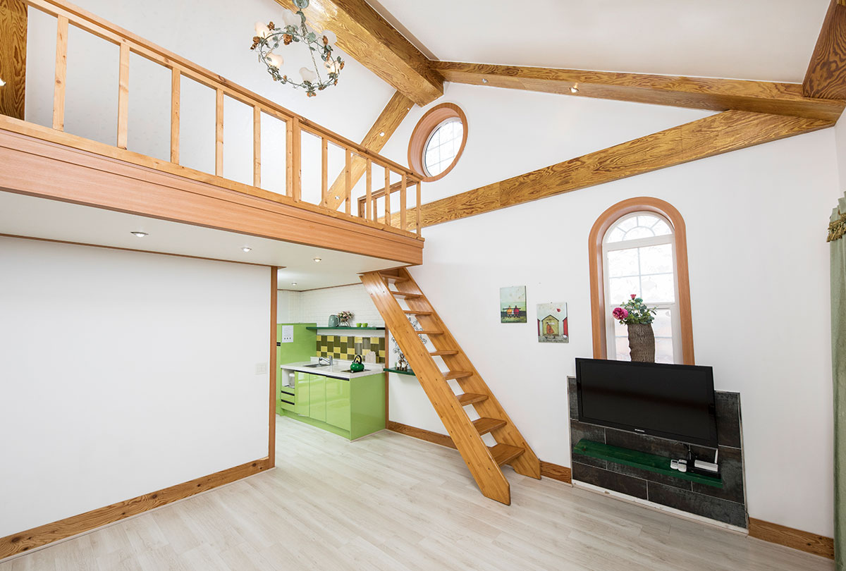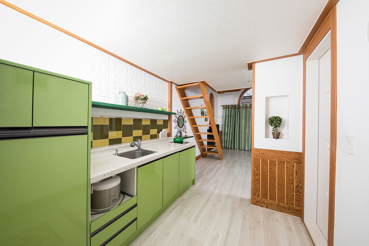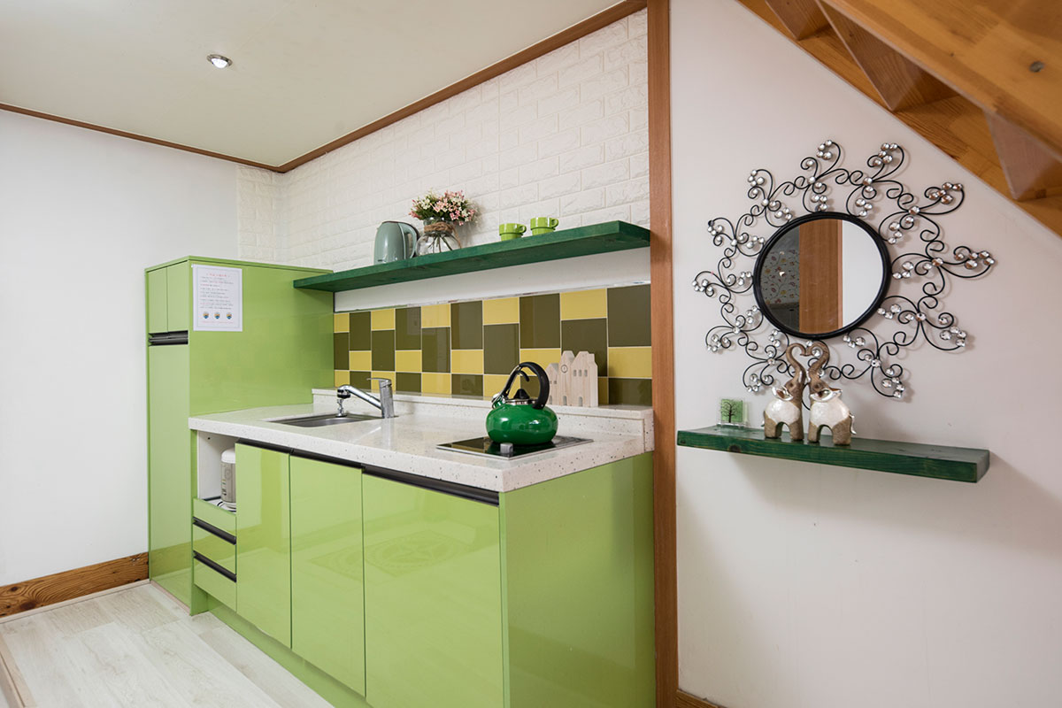 침대, 쇼파, TV42인치, 냉장고, 침구류, 에어컨(냉난방형), 헤어드라이기, 비누, 샴푸, 수건, 주방도구일체