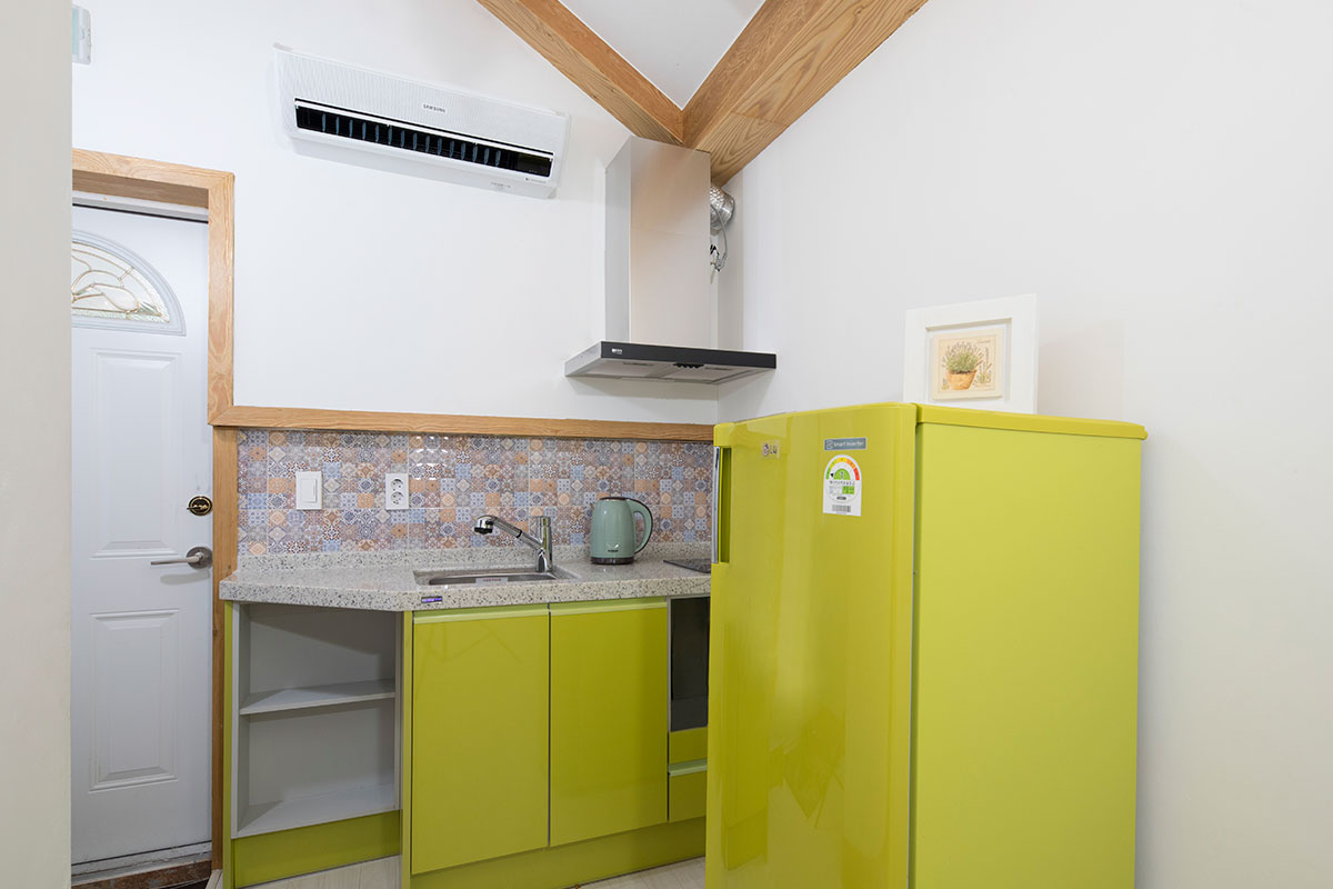 침대, 쇼파, TV42인치, 냉장고, 침구류, 에어컨(냉난방형), 헤어드라이기, 비누, 샴푸, 수건, 주방도구일체