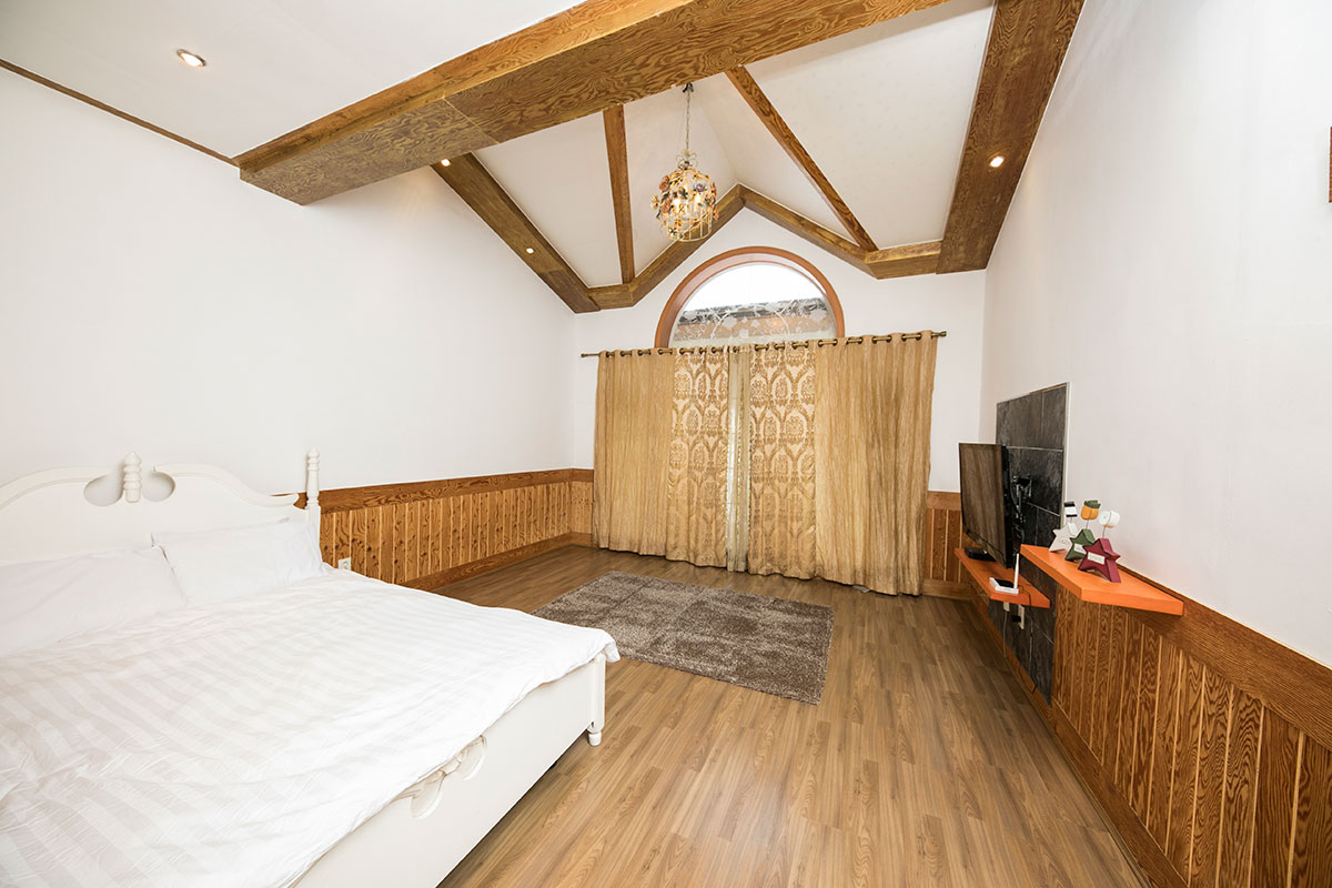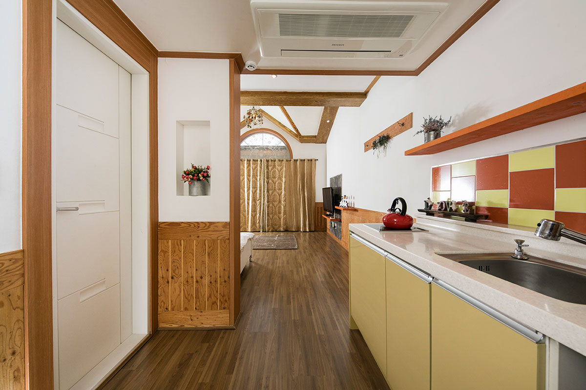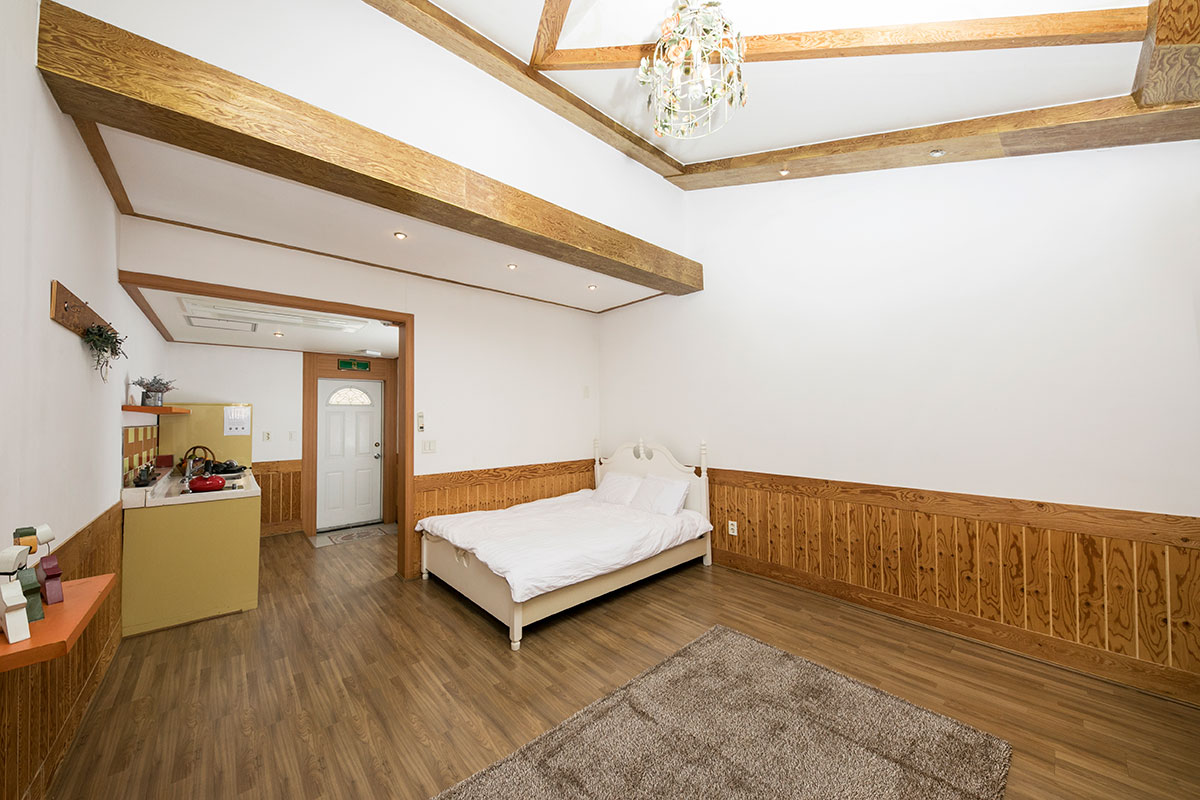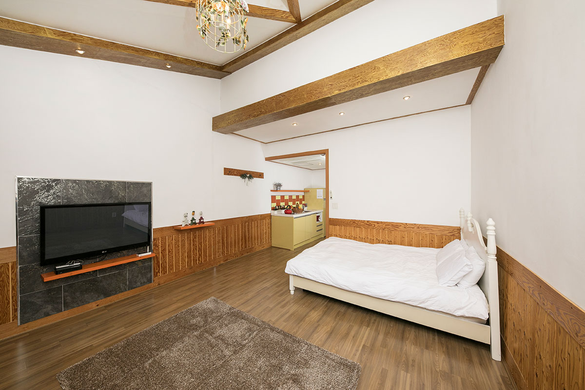 침대, 쇼파, TV42인치, 냉장고, 침구류, 에어컨(냉난방형), 헤어드라이기, 비누, 샴푸, 수건, 주방도구일체